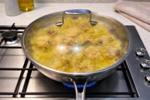 - Add the desired amount of chicken along with the marinade to the pan, cover with a lid, and cook gently over low heat until the chicken is tender and fully cooked, about 15–20 minutes per side.